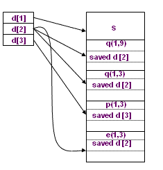 | . Non locals at depth i is in the activation record pointed to by d[i]