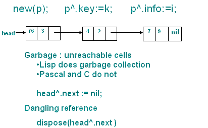 Generally languages like Lisp and ML which do not allow for explicit de-allocation of memory do garbage collection. A reference to a pointer that is no longer valid is called a 'dangling reference'. For example, consider this C code: