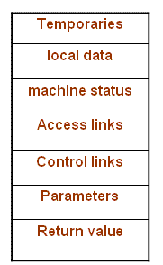 Of the fields shown in the figure, access link and control link are optional (e.g. Fortran doesn't need access links). Also, actual parameters and return values are often stored in registers instead of the activation record, for greater efficiency.
