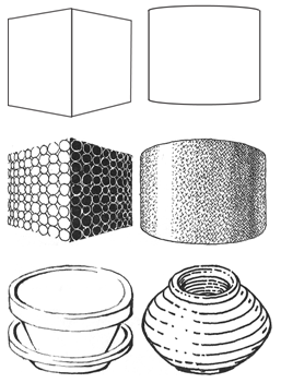 In the above objects you can see the use of thick and thin lines to create visual distances between the objects. Though objects are on the same plane the thick line gives the impression of being closer and the thin or faint line creates distances between objects. While perceiving visual perspective (near and far) sometimes it's very difficult to represent them visually in a simple manner. Therefore, trying this technique to reduce the difficulty of representing visual distances between objects.