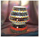 Glass handicraft has a long history with human civilization from ancient period. Glasswork is used for ornamental purpose or for the household works. The decorative Bangle (plate 5A) is a popular article that women admire. Bangle has social significance for married women in North India. Firozabad glasswork takes a special place in the world of glass handicraft. The glass factory uses traditional glass melting oven (plate 5B) fueled by firewood. Perfume bottles (plate 5C) are greatly admired because of their unique design quality. Persian influence through the Mughal Dynasty (1526 to 1757) has contributed significantly in the glass handicraft in the Indian subcontinent. The stained glass Lampshade (plate 5D) design is a typical household item that enriches the indoor environment. The multicolor glass cut composition glows in dark certainly creates a mystique environment in the house. Each glass piece is arranged separately with great precision and creates a wonderful artifact. The decorative quality has combined with the utility certainly makes a unique item inside the house.