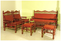 Lacquer has helped in producing large number of household products around the country. It is one of the naturally found organic substances that have enriched the design quality around the world. Indian subcontinent along with other Asian countries has rich experience of using lacquer coating on woodcraft from ancient period in various household items. The mention of Jatugriha in Mahabharata indicates the use of lacquer in ancient time. Furniture design in Gujarat (plate 7A) has produced some excellent handicrafts for centuries. Same lacquer design is used in ritualistic articles (plate 7B) or in social events (plate 7C) during the Navratri.