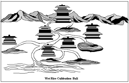 The case study of the Bali Wet-rice Cultivation is a unique example of such ecology where man has maintained the beauty of the land along with its purposeful activities. The success of the Balinese rice-cultivation depends upon precise control of water. Cultivation begins with the flooding of the fields, which remains under water for most of the 105 days growing cycle. There are 20 thousands temples existing in small islands of Bali.