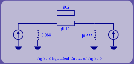 . Now, connect the transmission line ‘b' across the network as shown in fig 25.6 and then the total impedance across the sources will be,
