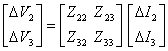 Since we are considering the transmission line ‘c' which is connected between buses 2 and 3, we can ignore the first row and column of the Zbus matrix and the reduced model will be,