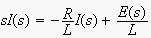 can be written down as: by taking the Laplace Transforms of the variables. The "transfer function" between I(s) and E(s) is given by: