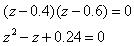 The characteristic equation of the poles located at 0.4 and 0.6 is