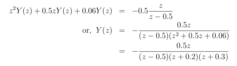 Taking z-transform on both sides of the above equation: