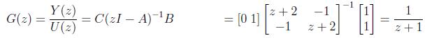 Although state model is of order 2, the transfer function has order 1. The eigenvalues of A are and