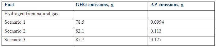 Table 3: GHG and air pollution emissions per MJ fuel of Hydrogen from natural gas produced