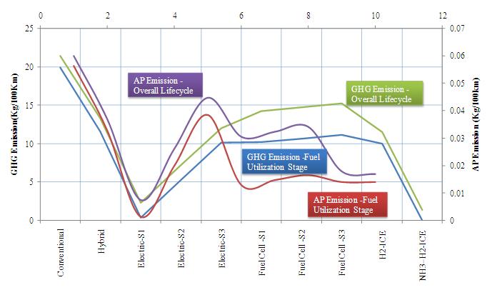 Table 4. Environmental impact associated with vehicle Overall Life cycle and Fuel Utilization State