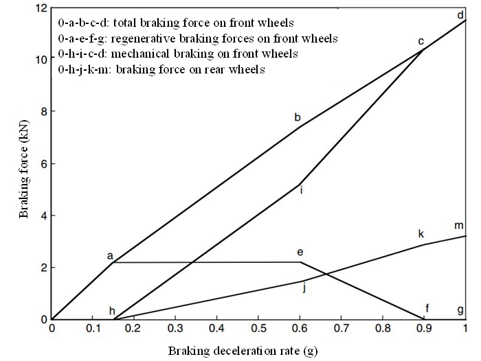 Active control of the braking force (torque) of the electric motor is easier than the control of the mechanical braking force. Thus, antilock in braking with an electric brake in EVs and HEVs is another inherent advantage, especially for a vehicle with an electric motor on four wheels. Figure 5 conceptually illustrates a scheme of regenerative braking, which can potentially function as an ABS.