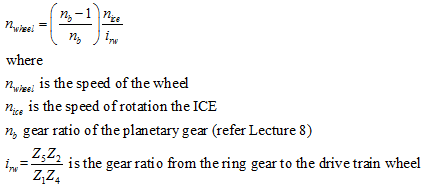 - The ICE and the EM are connected to the yoke and sun gear respectively.