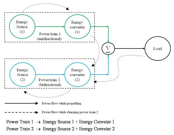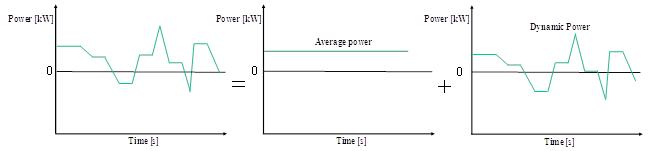 The load power of a vehicle varies randomly in actual operation due to frequent acceleration, deceleration and climbing up and down the grades. The power requirement for a typical driving scenario is shown in Figure 3. The load power can be decomposed into two parts: