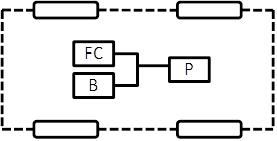 • Configuration 3: In this arrangement fuel cell is used, Figure 4c. The battery is an energy storage device, whereas the fuel cell is an energy generation device. The operation principle of fuel cells is a reverse process of electrolysis. In reverse and electrolysis, hydrogen and oxygen gases combine to form electricity and water. The hydrogen gas used by the fuel cell can be stored in an on-board tank whereas oxygen gas is extracted from air. Since fuel cell can offer high specific energy but cannot accept regenerative energy, it is preferable to combine it with battery with high specific power and high-energy receptivity.