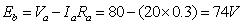 Maximum speed corresponds to D=1, at which Va=Vdc=80V