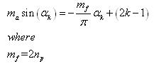 The value of the starting angle of the kth pulse (αk) is given by numerically solving the following equation