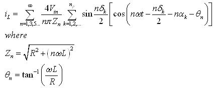 The angles θ and α for a sine PWM with 6 pulses per half cycle are calculated using equations 13 and 14 and listed in Table 1 . The waveforms of the voltage and current are shown in Figure 7.