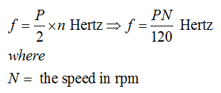 In a 4 pole, in one revolution 2 cycles of e.m.f are generated. Hence, for a P pole machine, in one revolution P/2 cycles are generated. For a P -pole machine, in one revolution per second, P/2 cycles per second of e.m.f will be generated. Hence, for a P pole machine, in n revolutions per second