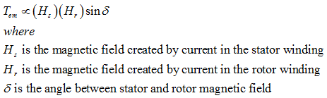 The total torque is shown in Figure 1c . This torque is developed due to the interaction of stator and rotor magnetic fields and hence is known as interaction torque or electromagnetic torque . The magnitude of the electromagnetic torque (Tem) or interaction torque is given by