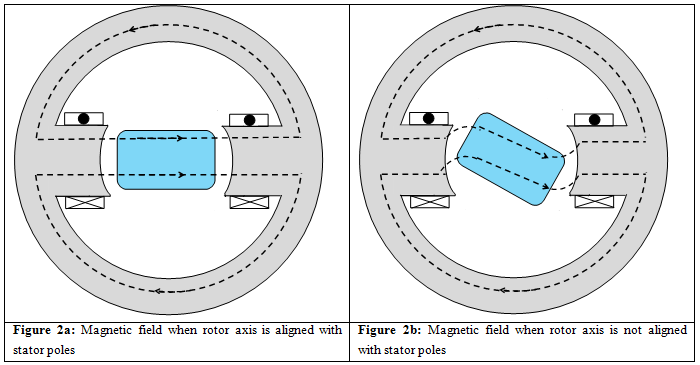 To realign the rotor from the position shown in Figure 2a to position shown in Figure 2b , a torque is exerted by the flux lines on the rotor. This torque is known as the reluctance or alignment torque .