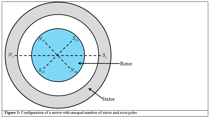 Now consider the pole pairs (Ns, Sr2) and ( Ss, Sr1), the angle between the pole pairs is same. Hence, the force of attraction between Ns and Sr2 is same as the force of repulsion between Ss and Sr1 and thus, the resultant force acting on the rotor is zero. Therefore, in this case no electromagnetic torque is developed.
