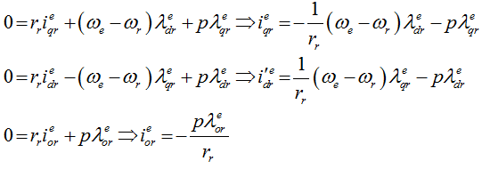In case of singly excited IM, the rotor voltages are zero, that is v e = 0, vdre = 0 and vore= 0 . Hence, the rotor currents can be obtained as