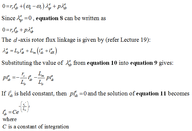 By suitable choice of θs on an instantaneous basis, equation 6 can be achieved. Satisfying equation 7 can be accomplished by forcing d -axis stator current to remain constant. To see this, consider the d- axis rotor voltage equation