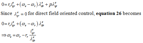 From equation 28 it can be observed that instead of establishing θe using the rotor flux as shown in Figure 3 , it can be determined by integrating ωe given by equation 28 where ωe is given as: