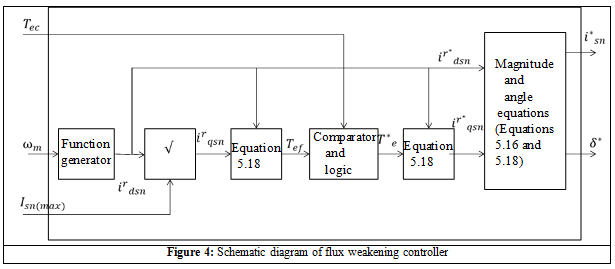The schematic of the Flux Weakening Controller is shown in Figure 4. There are three inputs to the controller namely: