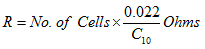 The figure given in Table I of 0.022 Ω per cell is a rule of thumb figure taken from a range of good quality traction batteries. A good estimate of the internal resistance of a lead acid battery is thus: