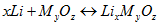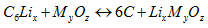 The lithium polymer battery uses lithium metal for the negative electrode and a transition metal intercalation oxide for the positive. In the resulting chemical reaction the lithium combines with the metal oxide to form a lithium metal oxide and release energy. When the battery is recharged the chemical reaction is reversed. The lithium is thus both a reactant and the mobile ion that moves through the electrolyte. The overall chemical reaction is: