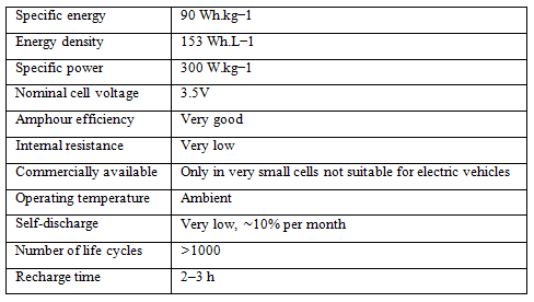 The essential features of the battery are shown in Table II. An important point about lithium ion batteries is that accurate control of voltage is needed when charging lithium cells. If it is slightly too high it can damage the battery, and if too low the battery will be insufficiently charged. Suitable commercial chargers are being developed along with the battery.
