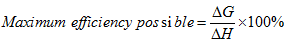 We can now see that there is a limit to the efficiency, if we define it as in Eq. 4. The maximum electrical energy available is equal to the change in Gibbs free energy, so: