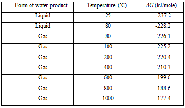 Table II ΔG for the reaction H2 + 12 O2 → H2O at various temperatures