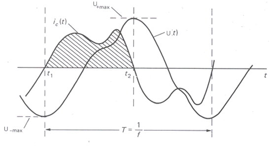 Fig. 30.3 Diagram of voltage U(t) and current ic(t) from circuit Fig. 30.2(a)