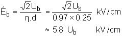 For each sample of insulating liquid, six measurements of breakdown voltages are recommended to be performed at an interval of 2 min. (VDE), 1-5 min. (IEC) or 10 min. (TGL), stirring the liquid thoroughly after every breakdown. TGL recommends to consider arithmetic mean of the measurement numbers two to six, whereas VDE and IS recommend mean of all the six values to be taken into account. If the mean rms breakdown voltage is Ub in kV, the peak value of electric strength of the liquid is given as follows: