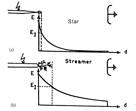 - Unlike uniform and weakly nonuniform fields, in case of extremely nonuniform fields, the process of avalanche formation at the tip of a sharp electrode is not able to grow deeper in the gap towards the opposite electrode because of steep fall in potential gradient at the tip.