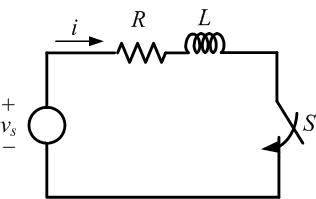 In this section we shall consider transients in a circuit that contains a resistor and inductor (R - L circuit). Consider the circuit shown in Fig. 6.1 that contains an ideal source ( νs ), a resistor ( R ), an inductor ( L ) and a switch ( S ). It is assumed that the switch is open and is closed at an instant of time t = 0. This implies that the current i is zero before the closing of the switch. We shall first discuss the effect of closing the switch on the line current (i ) when the source is dc. Following this we shall study the effect when the source is ac and will show that the shape of the transient current changes with the changes in the phase of the source voltage waveform at the instant of closing the switch.