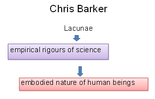 According to Chris Barker, Cultural Studies has suffered by sealing itself off from the empirical rigours of science and the embodied nature of human beings. There is an urgent need to adopt the languages of evolutionary biology, evolutionary psychology, psychotherapy and a meaningful spirituality if the discipline has to fulfill its therapeutic function as well.