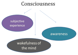 We may understand consciousness simply as awareness: we are aware about our surroundings, say, you are aware that you are reading this lecture. At a deeper level we can consider consciousness as a subjective experience: what we feel, understand, and experience as an individual in our world is termed consciousness. Another way of looking at consciousness is as the wakefulness of the mind.