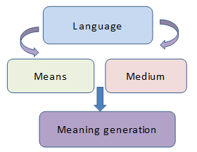 “Language is a central concern of cultural studies. It is the means and medium for the generation of significance or meaning. The concept of meaning is core to the explication of culture. To investigate culture is to explore how meaning is produced symbolically in language as a signifying system. Here, meaning is generated through difference, the relation of one signifier to another, rather than by reference to fixed entities in an independent object world”.