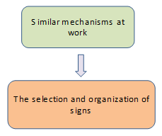 Now the question arises how or why we select certain signs and not others, why and how there are certain ways of organizing these signs and not others that become naturalized or conventionalized. This also refers to the idea of categorization: we carve out reality through categories in certain ways but we seldom contemplate on whether this is the only way to carve out reality.