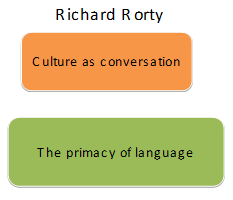 The philosopher Richard Rorty is an eminent figure in the field of the anti-representationalist school of thought. He refers to two central formulations: culture as conversation and the primacy of language. Rorty's theory is relevant and throws light in support of language as a site and as a constitutive feature of culture. Rorty and other philosophers of the same formulation belong to the school of thought known as anti-representationalism. This simply means that one cannot represent anything faithfully because it is through limits of discourses that we may perceive reality. For instance, there is no god-like vantage point from which to survey the world and language separately in order to establish the relationship between them. Therefore it also follows that one does not have any objective truths. This is also applied to science. Thus we have only justifications where it was initially thought that they were objective truths.