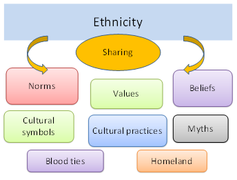 Ethnicity is about sharing. We shall see here how many things are shared by members of an ethnic group or in the name of ethnicity. We see that members of an ethnic group share certain norms and values and they have more or less the same beliefs. They share cultural symbols with which they are emotionally connected. Ethnicity is also about sharing cultural practices in everyday ways of living life.