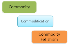 When we study the commodity (goods/services) within the larger discourse of Cultural Studies we do not study only the commodity per se . Along with “commodity” there are other terms which are derivatives of the term commodity, for instance, Commodification and Commodity Fetishism, seminal terms in Cultural Studies and political economy. Chris Barker defines these three terms in the following way: