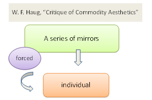 W. F. Haug in an essay entitled “Critique of Commodity Aesthetics” argues that when we consider the aesthetics of the commodity we find that we are provided with a series of mirrors that is forced on to the consumer. The commodity in its final aesthetically pleasing form is a mirror in which the individual contemplates himself or herself.