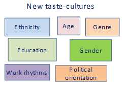 Further, we have new taste-cultures grouped according to ethnicity, age, genre, etc: