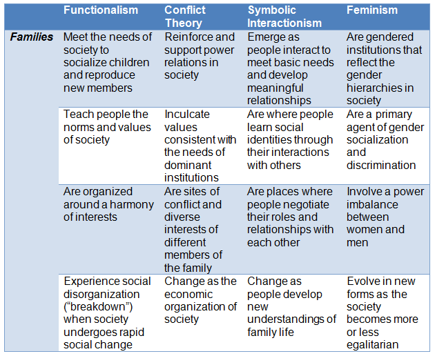Sociologists who study the family have used many perspectives in their analyses. However, in this lecture, we are going to discuss four primary perspectives, viz. functionalism, conflict theory, symbolic interactionism and feminism.
