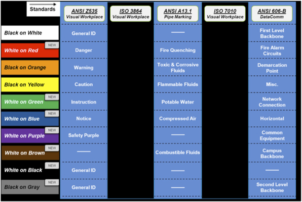 Pipes may be double banded as with purple and yellow to indicate 'hazardous and valuable' material.
